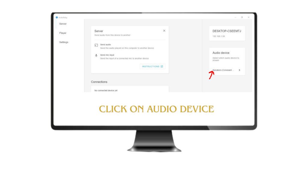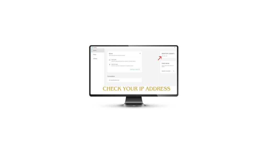 • Check the IP address Shown on Your PC or laptop after launching Audio Relay Software.
