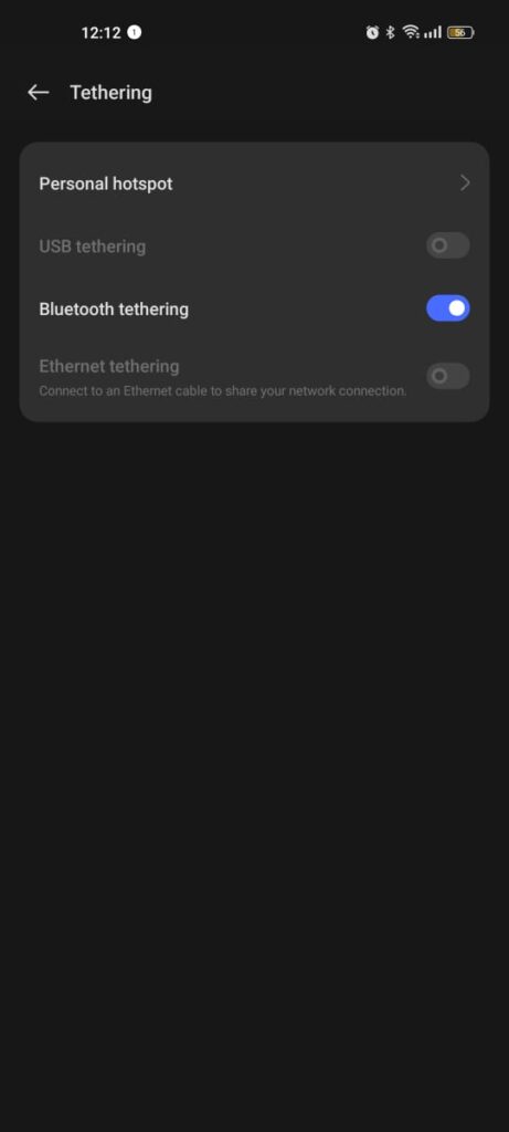 • Open Bluetooth tethering.